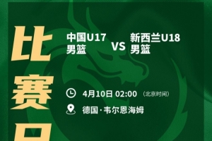 直播吧4月9日讯中国篮球之队发布赛事信息,明日中国U17男篮将迎来2026年曼海姆邀请赛小组赛收官战。
