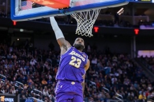 寒光凛凛似当年!詹姆斯反击踩着三分线起步超远距离单臂滑翔劈扣