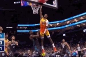 观赏性十足!米勒突破单臂舒展滑翔劈扣得分