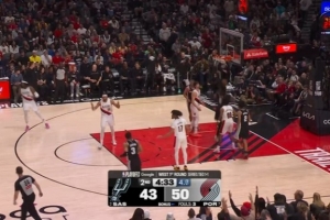 双脚都离地了!卡斯尔起跳落地裁判没吹 开拓者目送后者突破扣篮
