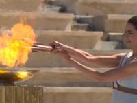 仪式开始之后,女祭司点燃火炬,并将其交到希腊奥委会主席斯皮洛斯·卡普拉洛斯手中。随后,火炬由斯皮洛斯-卡普拉洛斯交到东京奥组委代表井本直步子手中,后者点燃火种并将其带走。