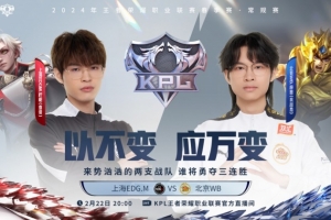 直播吧2月22日讯 2024王者荣耀春季赛继续进行,今日的第三场比赛由上海EDG.M对阵北京WB。