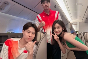 女演员李一桐更新了社媒,她在飞机上偶遇了出征巴黎的中国游泳队,并晒出了与汪顺和覃海洋的合照。李一桐配文写道:加油🇨🇳。