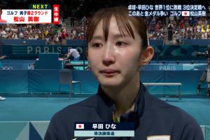 直播吧08月02日讯 巴黎奥运会乒乓球女子单打半决赛,中国选手孙颖莎4-0完胜日本选手早田希娜。赛后早田希娜接受采访时留下了泪水。