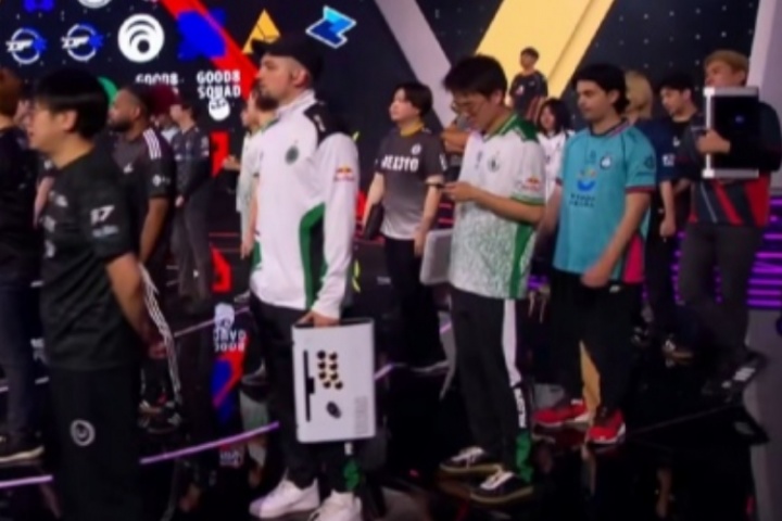 直播吧08月21日讯 EWC电竞世界杯街霸6项目开场,Xiaohai曾卓君作为卫冕冠军出场站在中央,检阅今年其他47名选手。