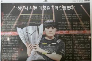 直播吧10月3日讯 知名纸媒《首尔体育报》刊登Canyon夺冠瞬间,以下是部分译文:
