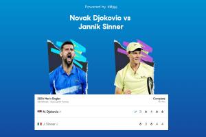 直播吧01月30日讯 澳网男单半决赛,38岁德约科维奇战胜24岁辛纳进决赛。