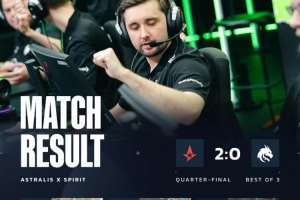 直播吧3月14日讯 CS2大赛EPL S23来到1/4决赛,Spirit遭Astralis两图横扫惨遭淘汰,A队进军半决赛对阵Aurora!