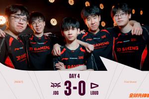 直播吧3月20日讯 今日先锋赛小组赛上,JDG以3-0的比分击败LOUD,赛后赛事官方更博庆祝:初心如磐,征途如虹,恭喜@JDG京东电子竞技俱乐部 赢下2026全球先锋赛小组赛第四日的比赛!