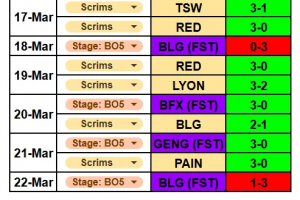 直播吧3月26日讯 随着先锋赛落幕,近日G2经理分享训练赛战绩,期间训练赛和正赛共6-1 GEN!