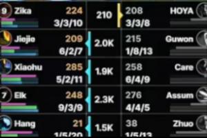 直播吧4月9日讯 LPL第二赛段NIP首局不敌WBG,本局Guwon使用蔚打出1-8-13的尴尬战绩。