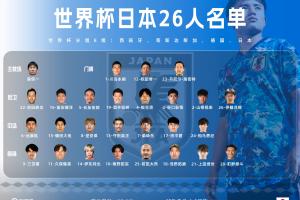 日本26人世界杯名单如下(平均年龄:27.73岁):