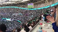 沙特扳平比分之后,球迷们也是非常高兴,记者晒出了沙特球迷的庆祝视频。