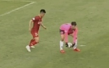 2019年中甲长春亚泰vs黑龙江FC,亚泰前锋谭龙偷鸡失败↓