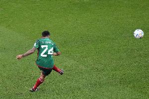 直播吧12月1日讯 墨西哥vs沙特,比赛第52分钟,查韦斯任意球超级世界波破门,墨西哥2-0领先沙特。