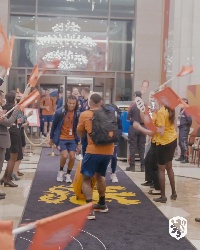 直播吧12月4日讯 荷兰3-1战胜美国晋级八强,荷兰队官推发布了一则球队抵达酒店的视频,来看看球员们的反应吧,原来最骚的是71岁的老帅范加尔。