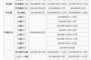 24/25赛季欧冠比赛将扩军至36支球队参赛,由联赛阶段+淘汰赛阶段组成,传统的小组赛将改为“瑞士轮”赛制,被36支球队的总积分榜所取代。