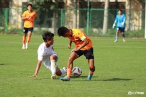 近日,中国足协青少年足球锦标赛(职业俱乐部U17组)决赛阶段分别在潍坊和大连赛区展开角逐。昨天下午,上海海港u17队迎来了本阶段的第一个对手云南玉昆U17队。上半场比赛,海港U17队占据主导,第22分钟,球队获得角球机会,余征宇主罚制造对方门前混乱,姜天乐门前头球破门。第43分钟,余征宇再次利用角球机会助攻王睿扬后点头球破门,将领先优势扩大为两球。易边再战,海港U17队攻势不减。比赛第49分钟,汪照普后场送出直传球穿透对方防线,温钧翔单刀扣过对方门将后打空门得手将比分再次扩大。第76分钟,海港U17队开出战术角球,李家齐在禁区前沿得球后远射,罗宇恒禁区内轻巧一垫完成破门,最终将比分锁定为4比0,海港U17队完成本阶段比赛的开门红。