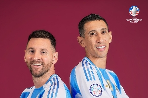 直播吧06月18日讯 美洲杯官方今日晒出梅西、迪马利亚拍定妆照的视频。