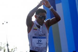 直播吧08月01日讯 2024巴黎奥运会男子20公里竞走决赛,厄瓜多尔选手布里安-达尼埃尔-平塔多1小时18分55秒获得金牌。