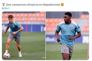 马竞正在备战新赛季西甲联赛,俱乐部官方社媒晒出了奥莫罗迪翁和巴里奥斯参与球队训练的照片,同时配文:“我们的奥运冠军”,这两位球员随西班牙国奥队获得奥运男足金牌。