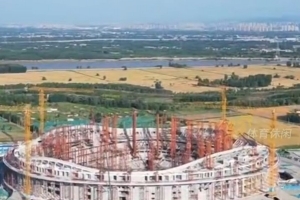 直播吧8月28日讯 据山东省体育局消息,济南黄河体育中心将于2026年12月竣工,足球场已进入屋盖施工阶段。