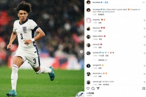 他也通过社媒晒照纪念,并配文道:“赢球、零封,完美的一夜!@凯恩,祝贺你达成100场里程碑。”