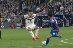 直播吧9月22日讯 英超第5轮,曼联客场0-0战平水晶宫。比赛中利桑德罗-马丁内斯向水晶宫中场镰田大地使出了双脚飞跺的危险动作。虽然没有跺到镰田大地,但裁判依旧向利马出示一张黄牌。