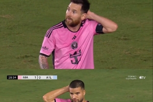 梅西劲射中柱&队友再射被扑,两人同款尴尬摸头😅