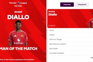 本场比赛,阿玛德打进1球并造点球,是曼联逆转的大功臣,他在比赛中有2次射正,5次成功过人。