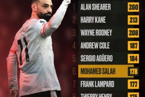 这粒进球是萨拉赫在英超中打进的第178粒进球,超越了切尔西名宿兰帕德(177球),独享英超历史射手榜第6。不过,萨拉赫的出场次数比兰帕德少了323次。