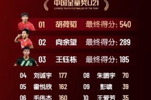 直播吧2月21日讯 足球周刊今日公布中国金球奖具体的相关得分,其中金童奖具体得分如下: