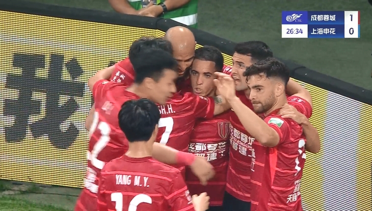 第26分钟,古尔芬克尔的左路传中,禁区中路费利佩没能顶到球,随后在地上伸腿将球扫出,薛庆浩出击左脚一挡,跟上的罗慕洛补射建功,蓉城1-0领先申花。