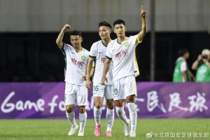 上半场结束 凭借达万和王子铭的进球,北京国安2-0领先石家庄功夫