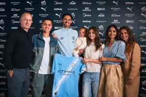 直播吧06月12日讯 曼城官宣米兰中场赖因德斯加盟,而他的家庭成员也来到签约现场,见证这一重要时刻。