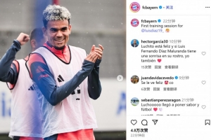 拜仁官方社媒也晒出了迪亚斯随队训练的照片,可以看出他的状态相当高昂,脸上挂满笑容。和凯恩等多位球员同框,并且和主帅孔帕尼进行了交流。