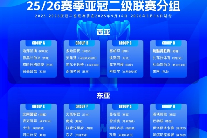 北京国安25/26赛季亚冠二级联赛小组赛赛程: