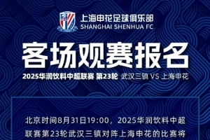 2025华润饮料中超联赛第23轮 武汉三镇 VS 上海申花 客场观赛报名