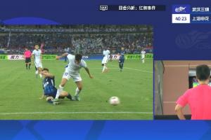 直播吧08月31日讯 申花vs三镇比赛第39分钟,特谢拉踩踏邓涵文脚踝,裁判在观看VAR后表示够不上红牌标准,对特谢拉出示黄牌。