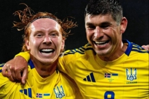 马利诺夫斯基双响,古苏利亚、卡柳日尼、奥切列特克破门为乌克兰打进五球。