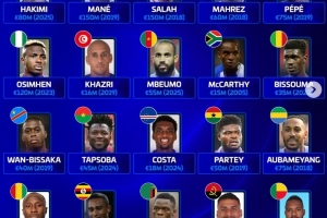直播吧10月14日讯 德国转会市场盘点了非洲各国球员历史身价纪录,萨拉赫和马内以1.5亿欧并列非洲历史身价最高球员。