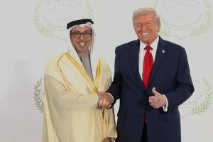 直播吧10月14日讯 美国总统特朗普会面了阿联酋副总理曼苏尔,特朗普与其握手时笑容满面:“非常多的资金,无限的资金,非常好的人。”