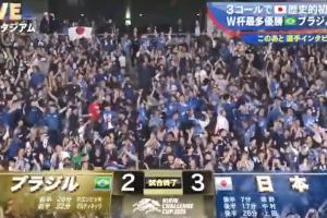 全场沸腾!日本让二追三逆转巴西,终场哨后现场观众爆发热烈欢呼