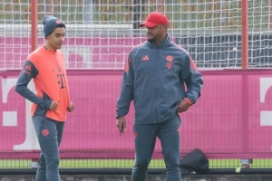 直播吧10月14日讯 《图片报》报道,穆西亚拉今天观看了队友训练。