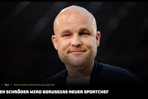直播吧10月14日讯 门兴格拉德巴赫俱乐部官方宣布,施罗德将出任俱乐部的新任体育总监,他接替了已经辞职的菲尔库斯。