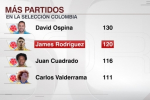 据ESPN统计,此役是J罗为哥伦比亚国家队出战的第120场比赛,队史出场次数仅少于奥斯皮纳。