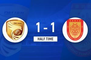 上半场比赛结束,大连鲲城1-1重庆铜梁龙。