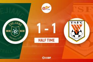 直播吧10月18日讯 中超第27轮,浙江坐镇主场杭州黄龙体育中心迎战山东泰山。上半场,瓦科造点+失点,赵博扑点+屡次神扑,卢卡斯手球VAR介入未判点,洛佩斯失误送礼,黄政宇、卡列洛破门。半场战罢,浙江队1-1山东泰山。