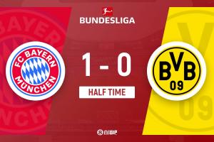 直播吧10月19日讯 北京时间10月19日凌晨0时30分,2025-26赛季德甲第7轮国家德比在安联竞技场展开角逐,拜仁慕尼黑主场迎战多特蒙德。上半场凯恩头球破门+联赛7轮12球,基米希角球助攻,拜仁主场暂时1-0领先多特,多特半场零射门。