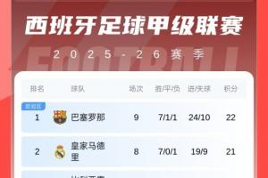 西甲积分榜:巴萨先赛暂升榜首领先皇马1分,皇马明日客战赫塔费